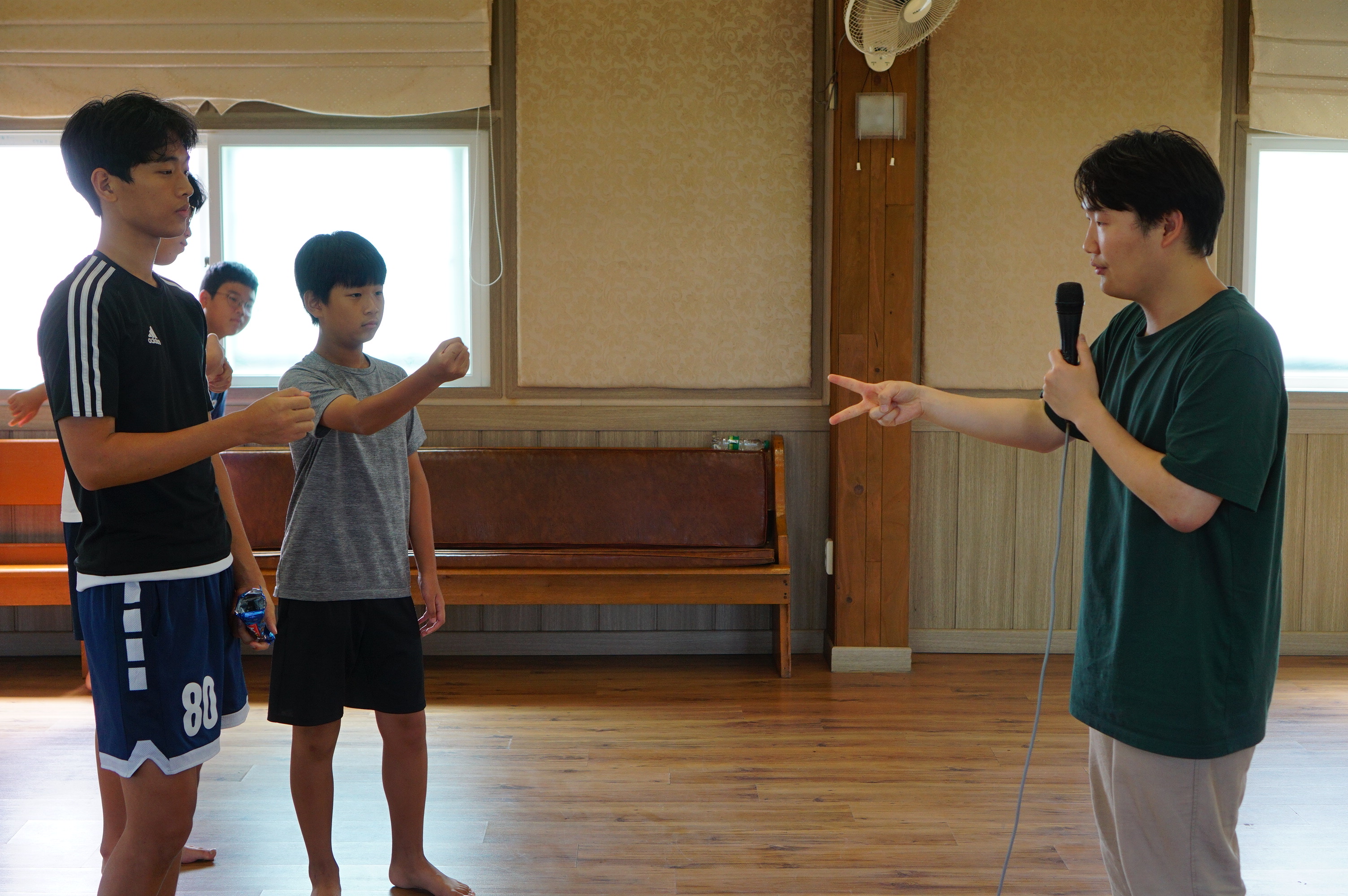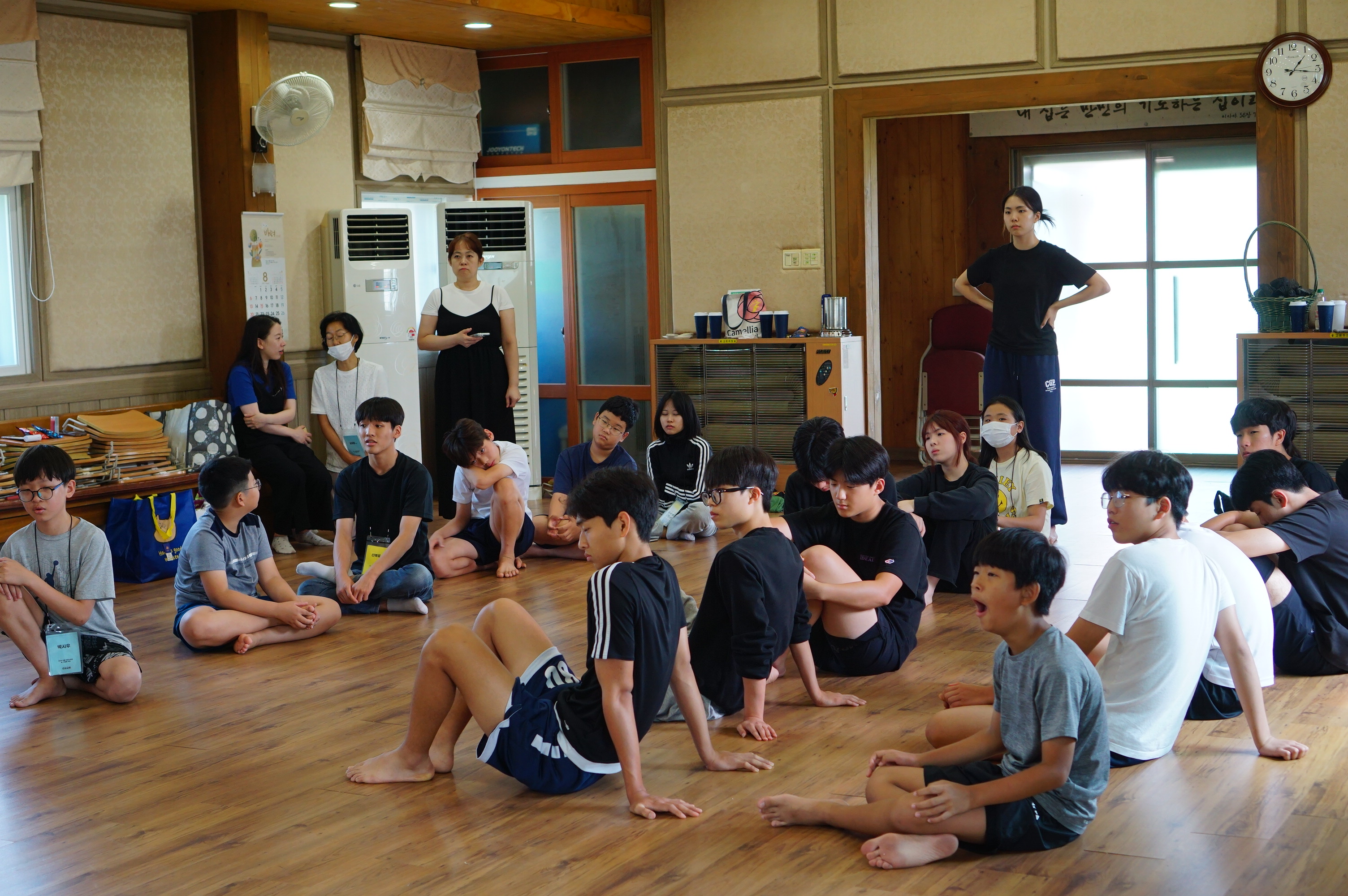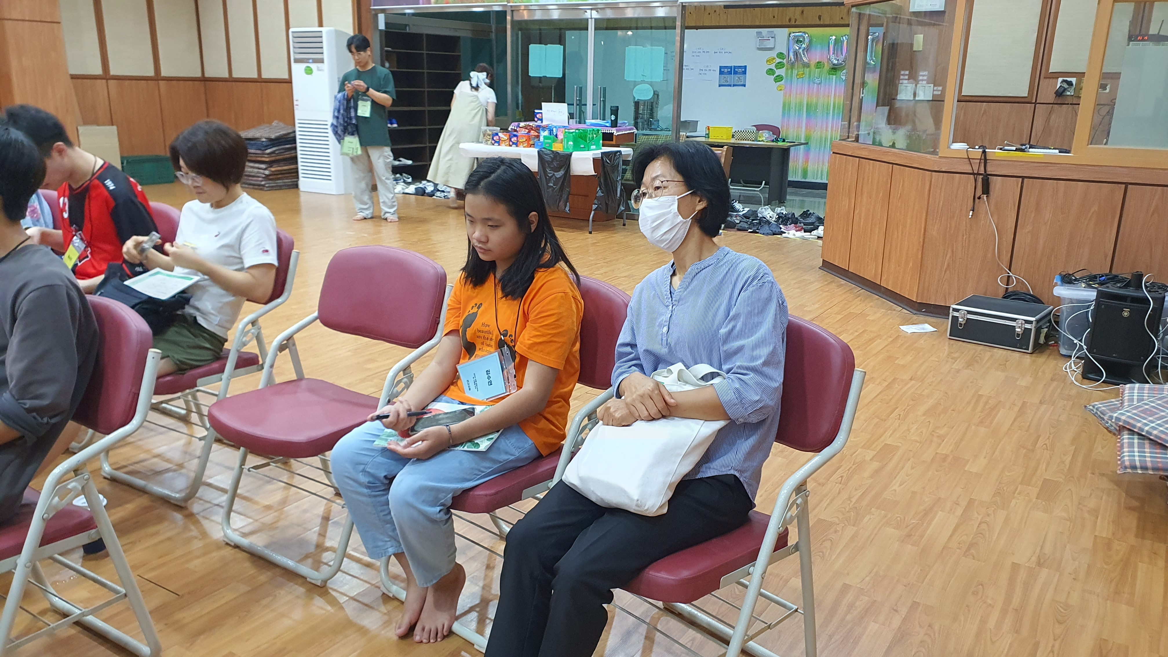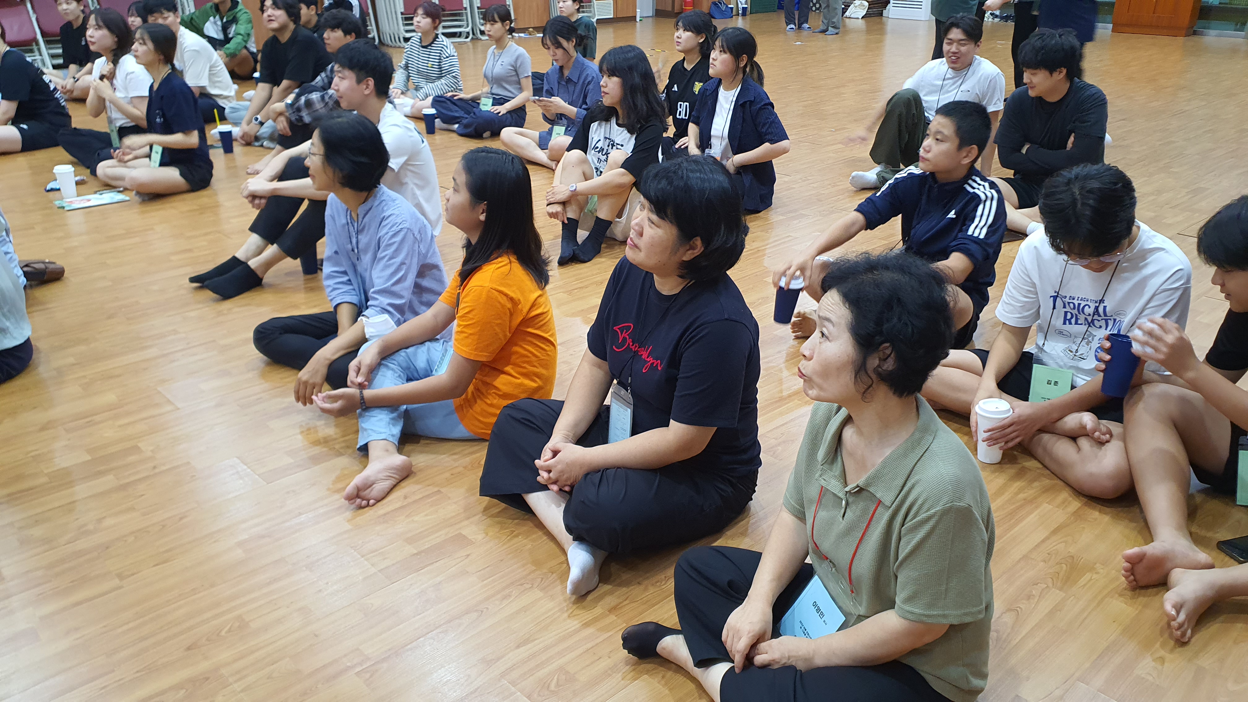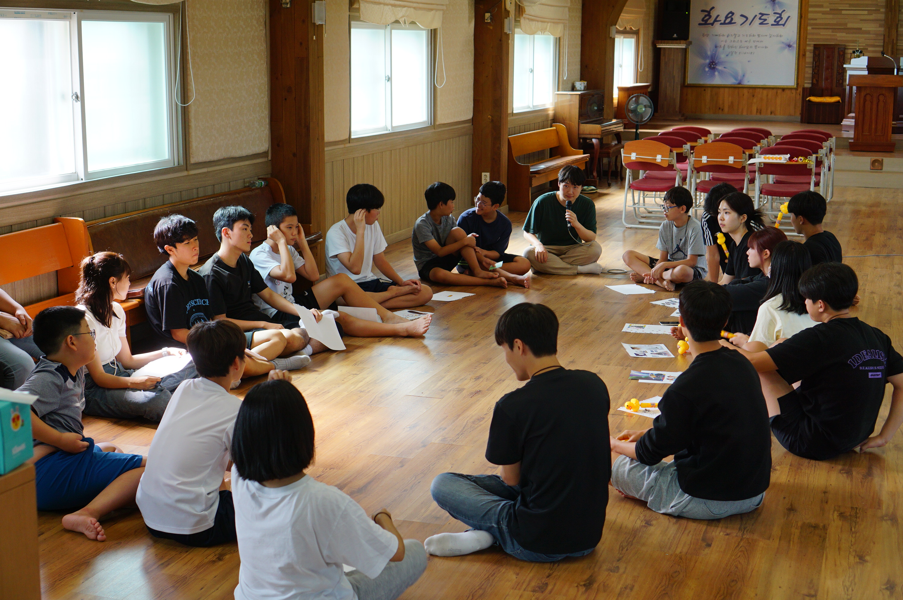 청년 & 청소년 단체 레크레이션 시간수련회 공지를 듣는 중인 학생들많은 질문과 답변이 오고 갔던 선택특강 시간식사시간~셋째 날 미라클 모닝지는 가위바위보 게임게임 규칙 설명을 듣는 중각종 이미지와 글과 스티커로 상대방의 인상을 열심히 표현 중인 학생들