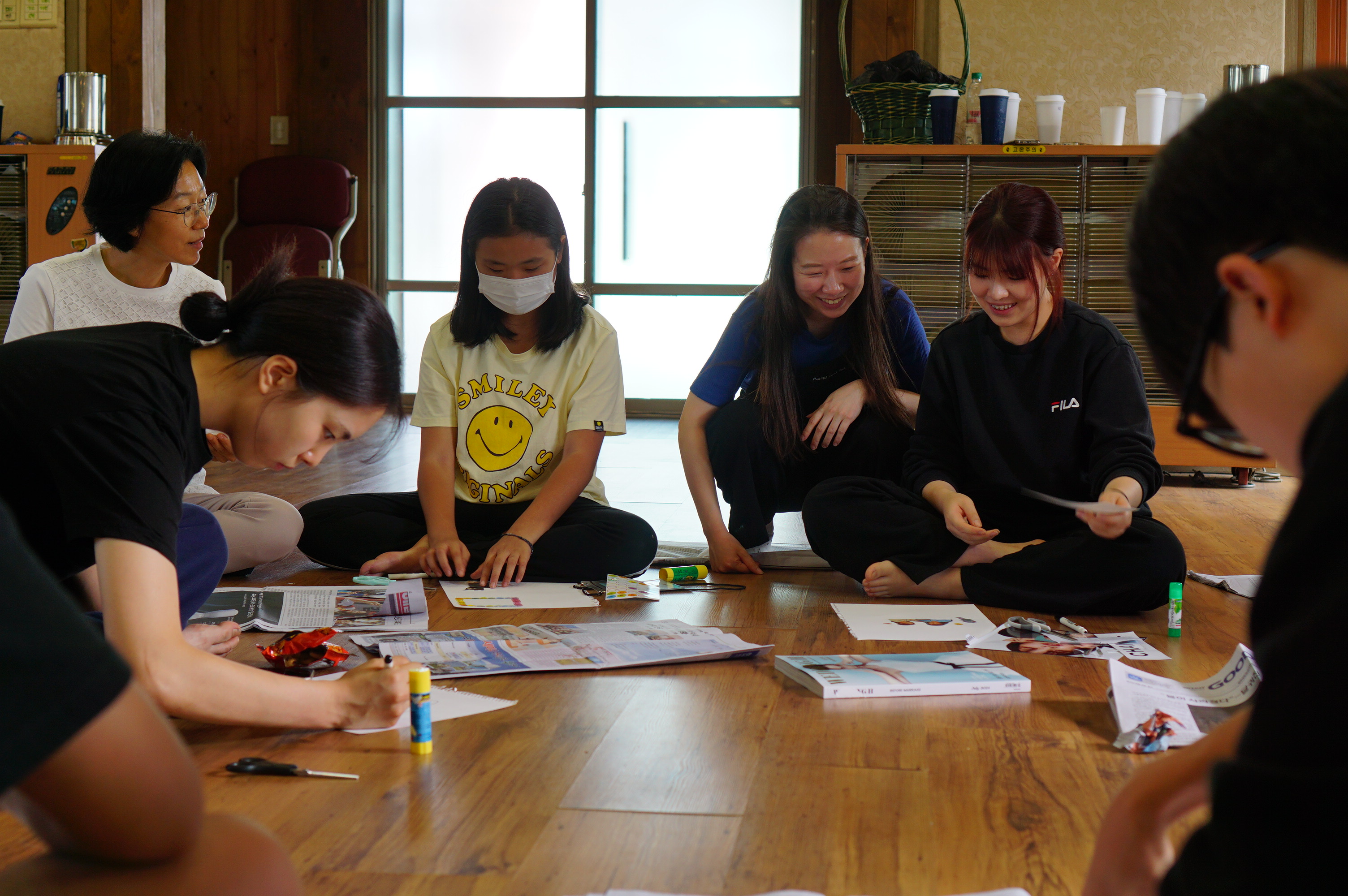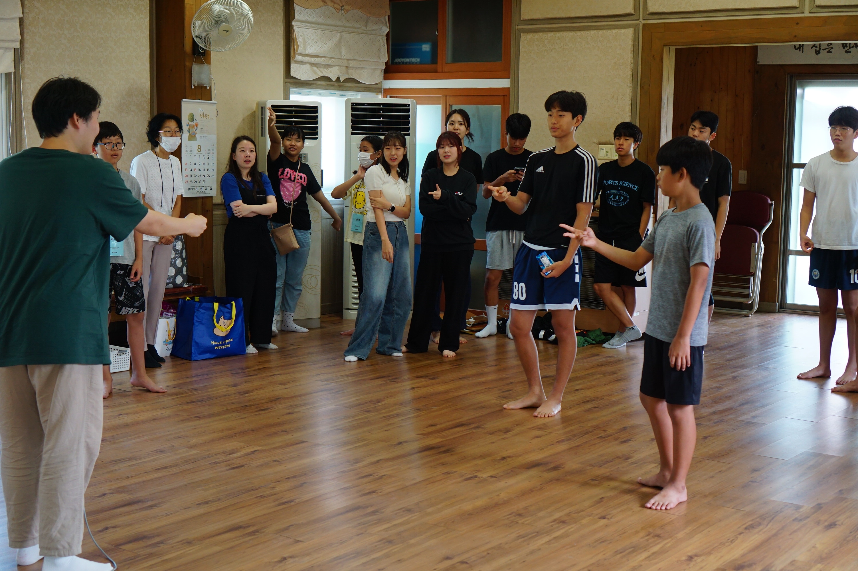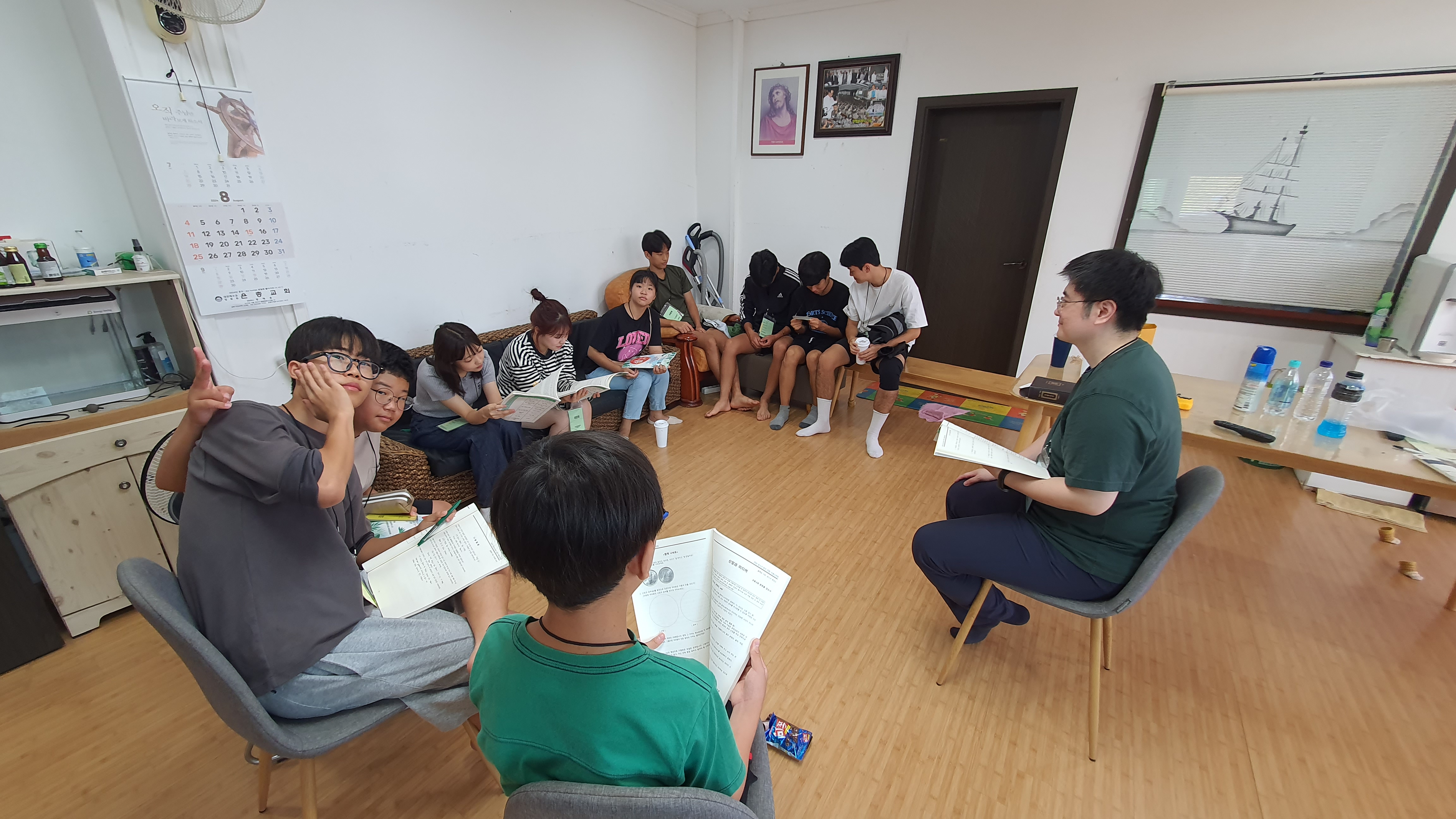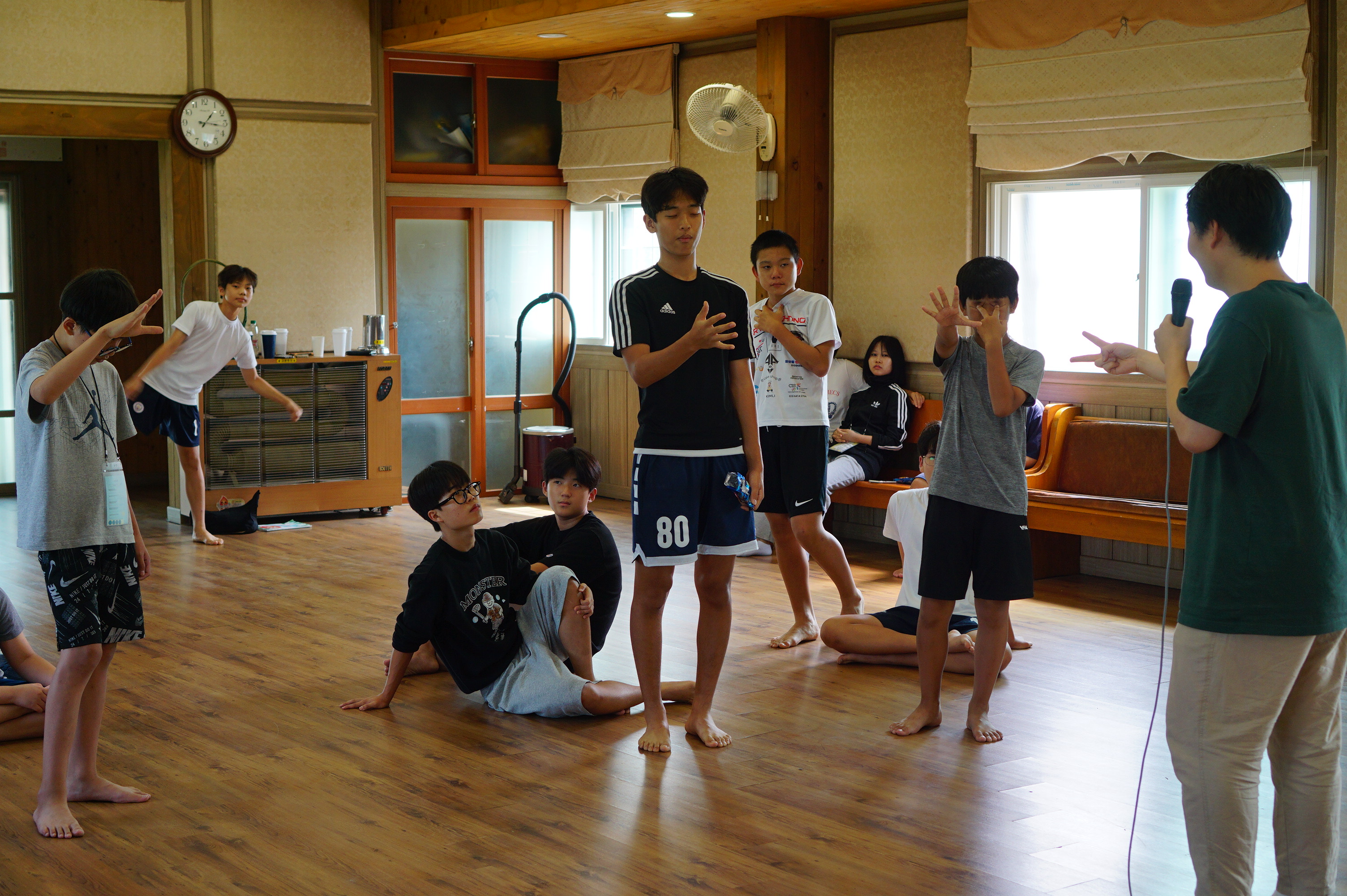 청년 & 청소년 단체 레크레이션 시간수련회 공지를 듣는 중인 학생들많은 질문과 답변이 오고 갔던 선택특강 시간식사시간~셋째 날 미라클 모닝지는 가위바위보 게임게임 규칙 설명을 듣는 중각종 이미지와 글과 스티커로 상대방의 인상을 열심히 표현 중인 학생들