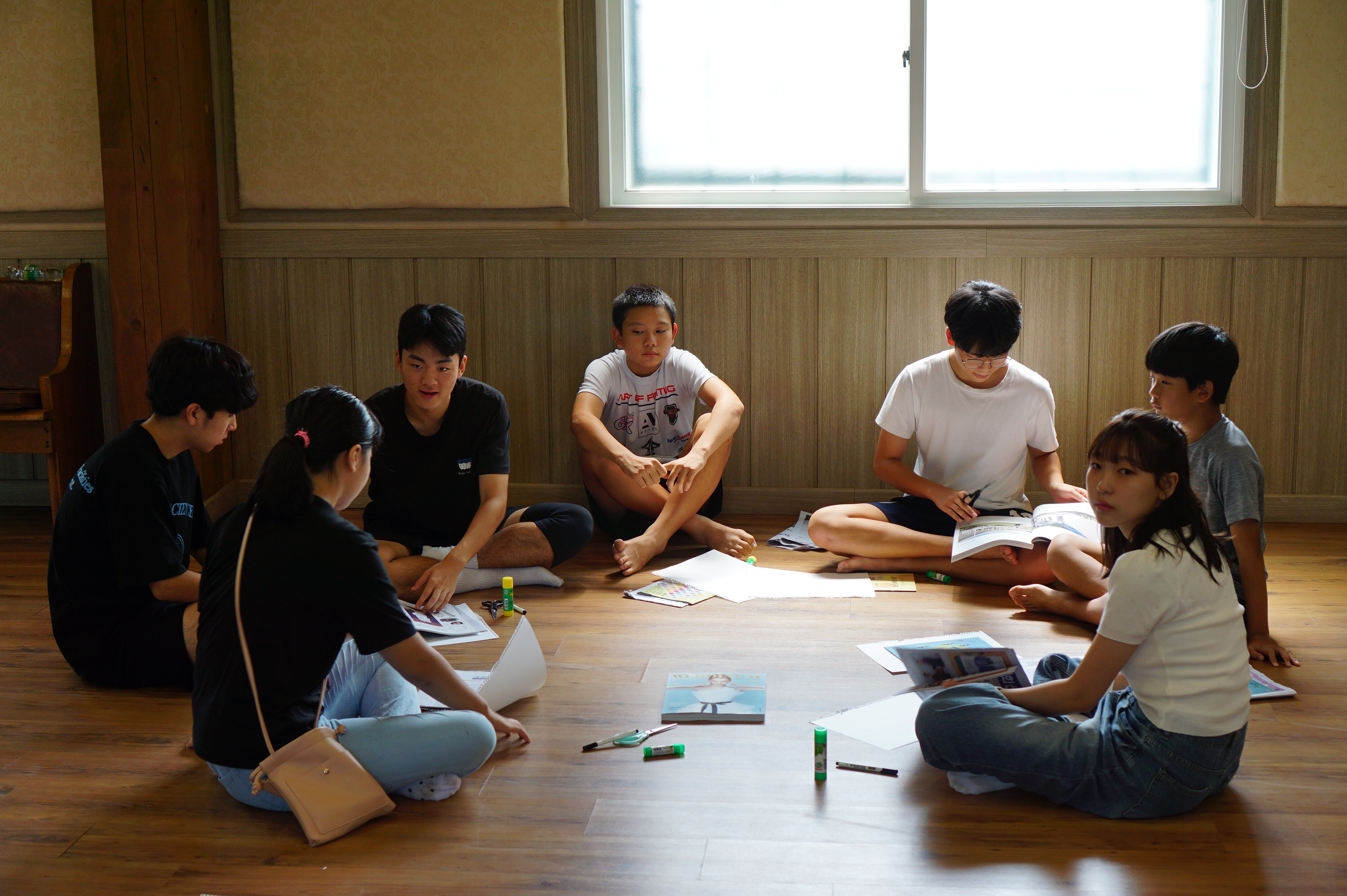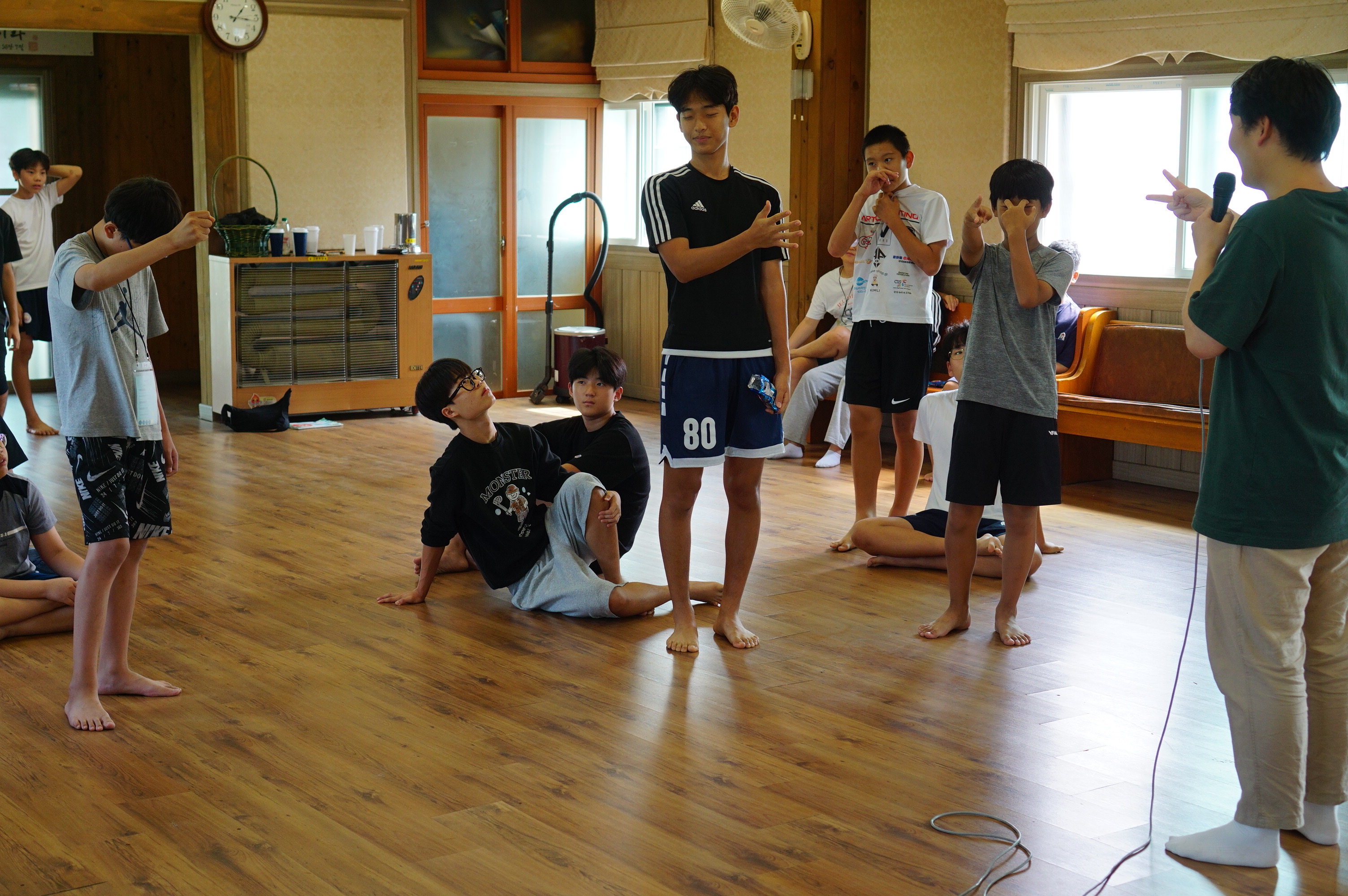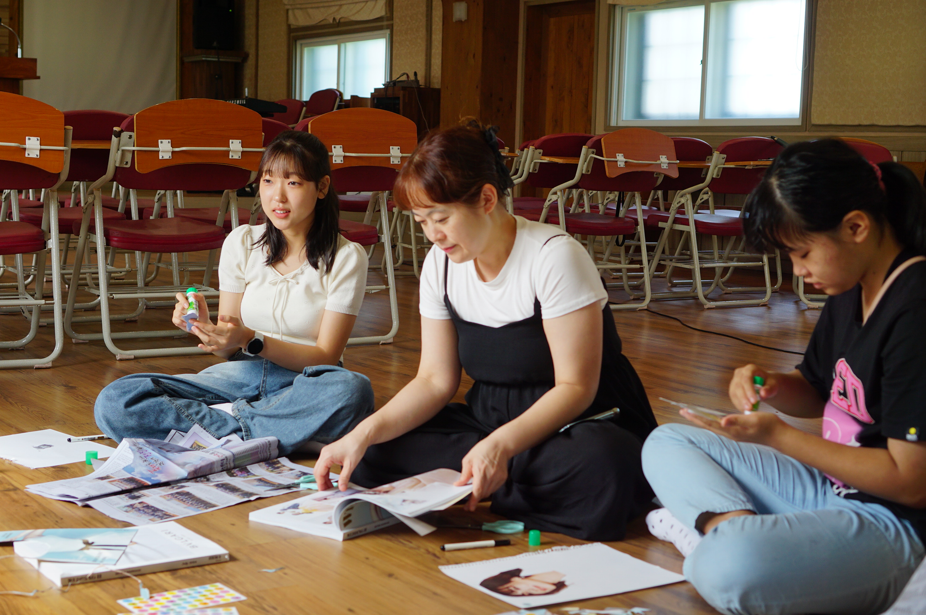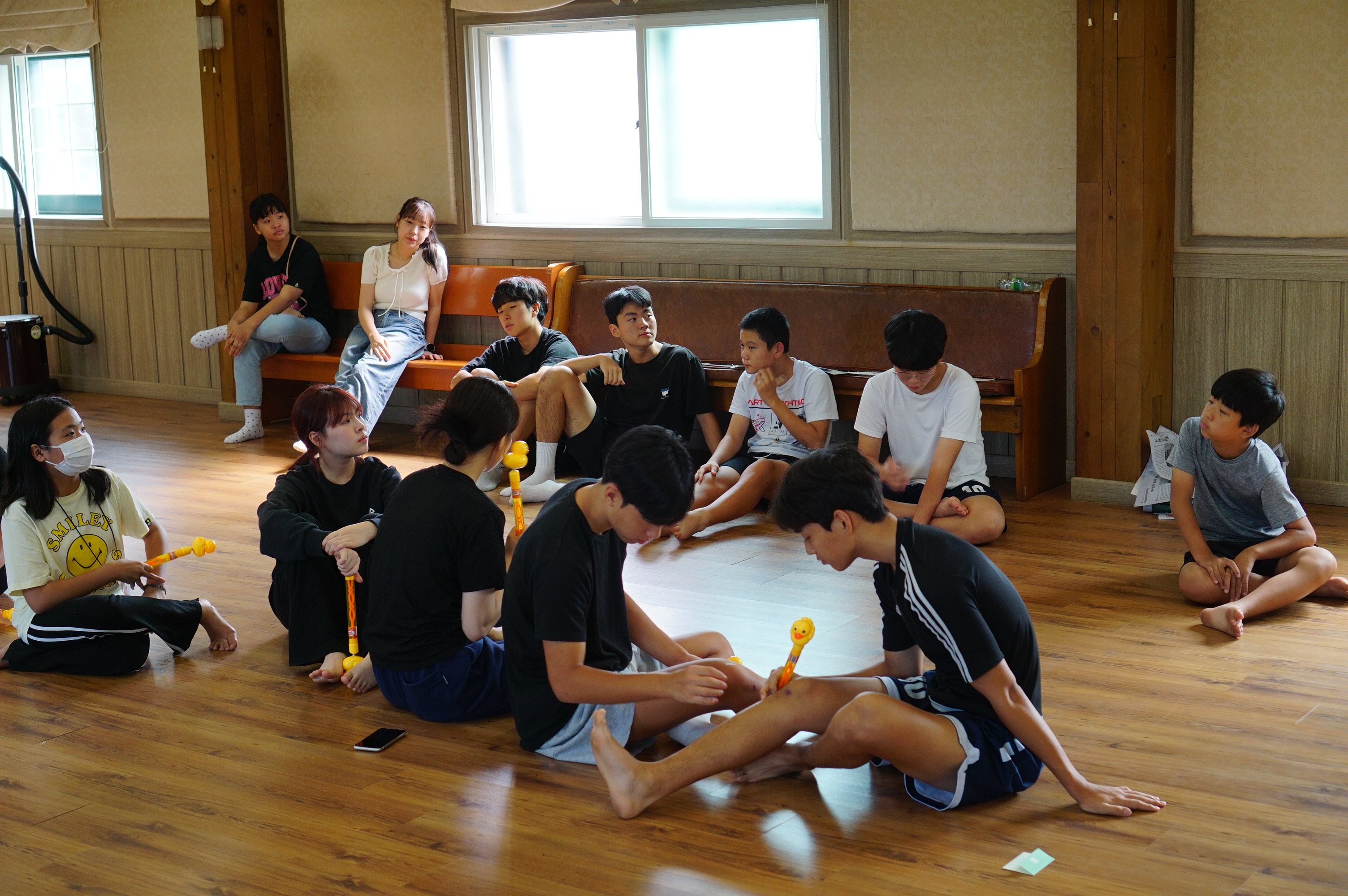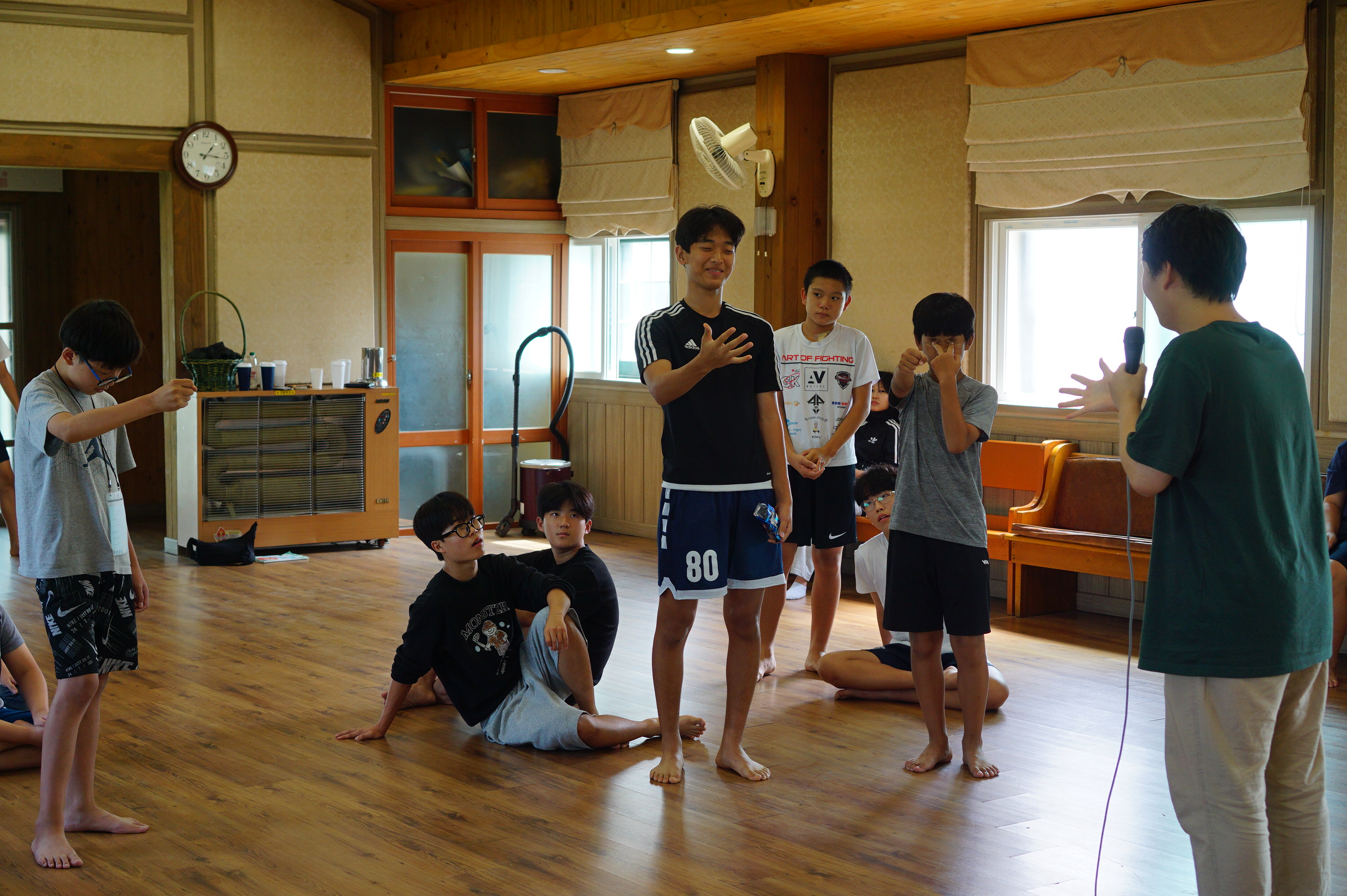 청년 & 청소년 단체 레크레이션 시간수련회 공지를 듣는 중인 학생들많은 질문과 답변이 오고 갔던 선택특강 시간식사시간~셋째 날 미라클 모닝지는 가위바위보 게임게임 규칙 설명을 듣는 중각종 이미지와 글과 스티커로 상대방의 인상을 열심히 표현 중인 학생들